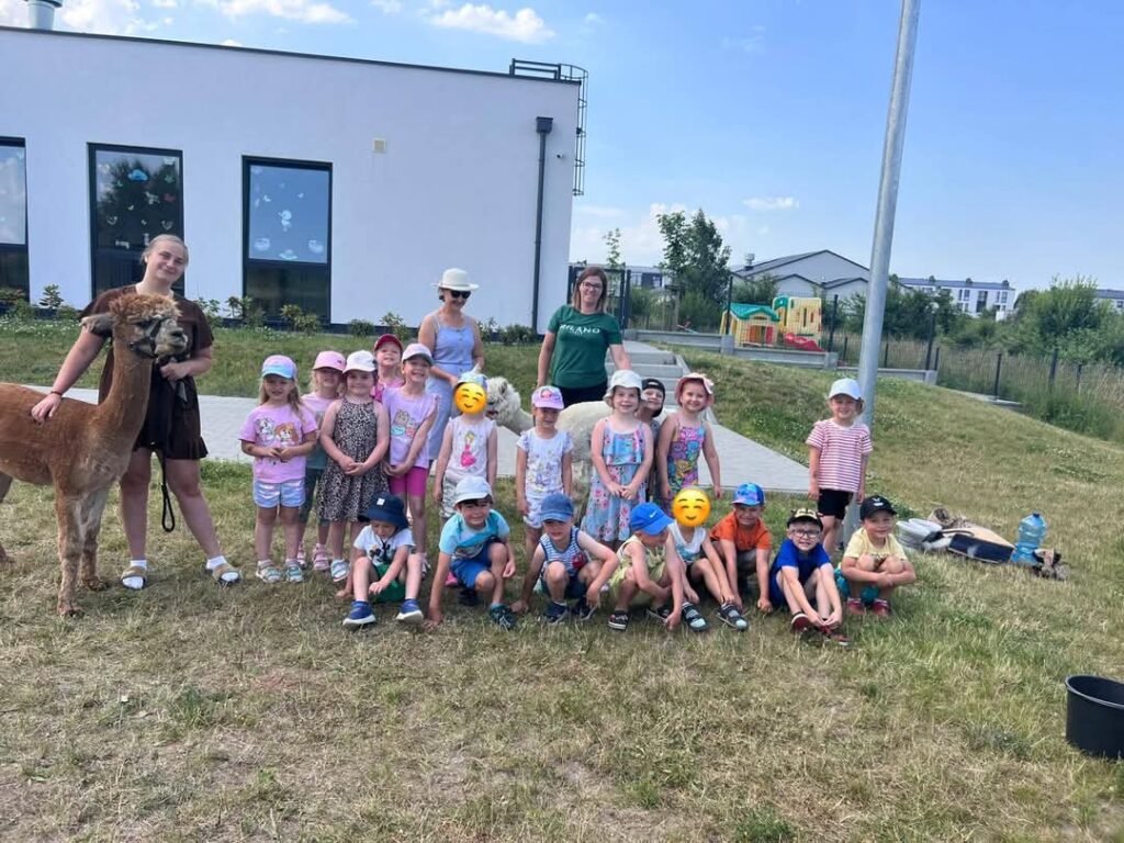 Nasze przedszkole odwiedziły alpaki Diego oraz Karmel i od razu podbiły serce wszystkich dzieci. Panie opowiedziały skąd pochodzą alpaki, co jedzą i jak się nimi zajmować. Dzieci nakarmiły i głaskały zwierzęta, to była wspaniała przygoda