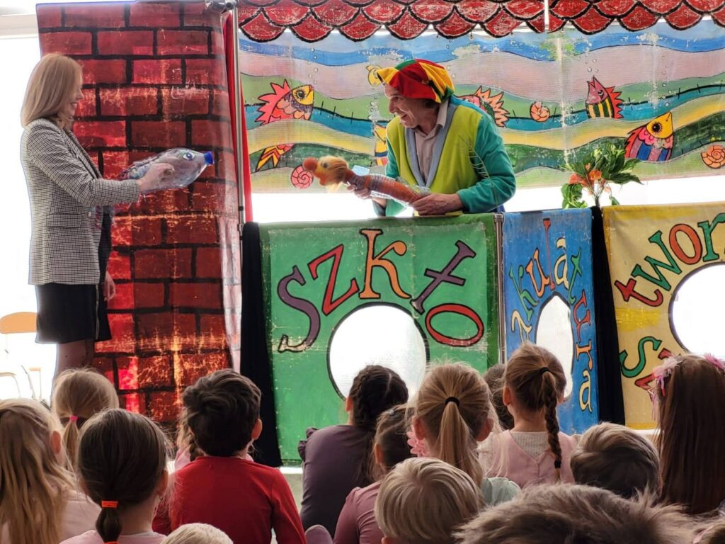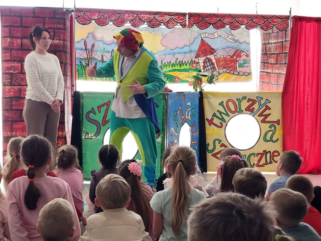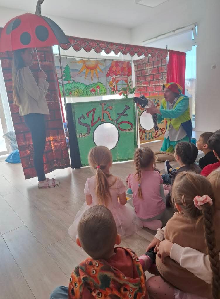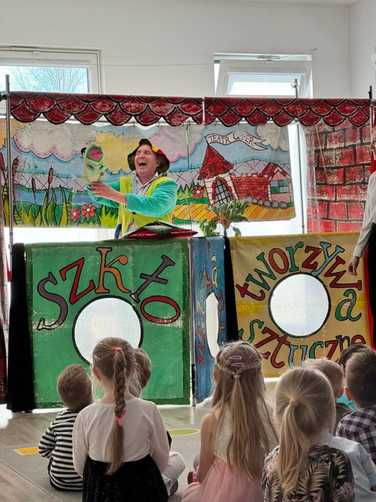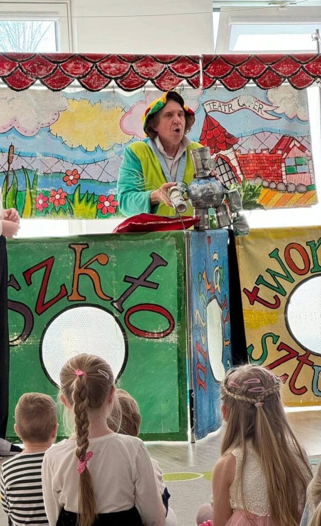 Dzień Teatru 2 kwietnia 2026 Z okazji Dnia Teatru całe przedszkole obejrzało spektakl Teatru Qfer o segregacji śmieci! 🗑️🌱 Dzieci bawiły się świetnie, śmiały się i uczyły, jak dbać o naszą planetę